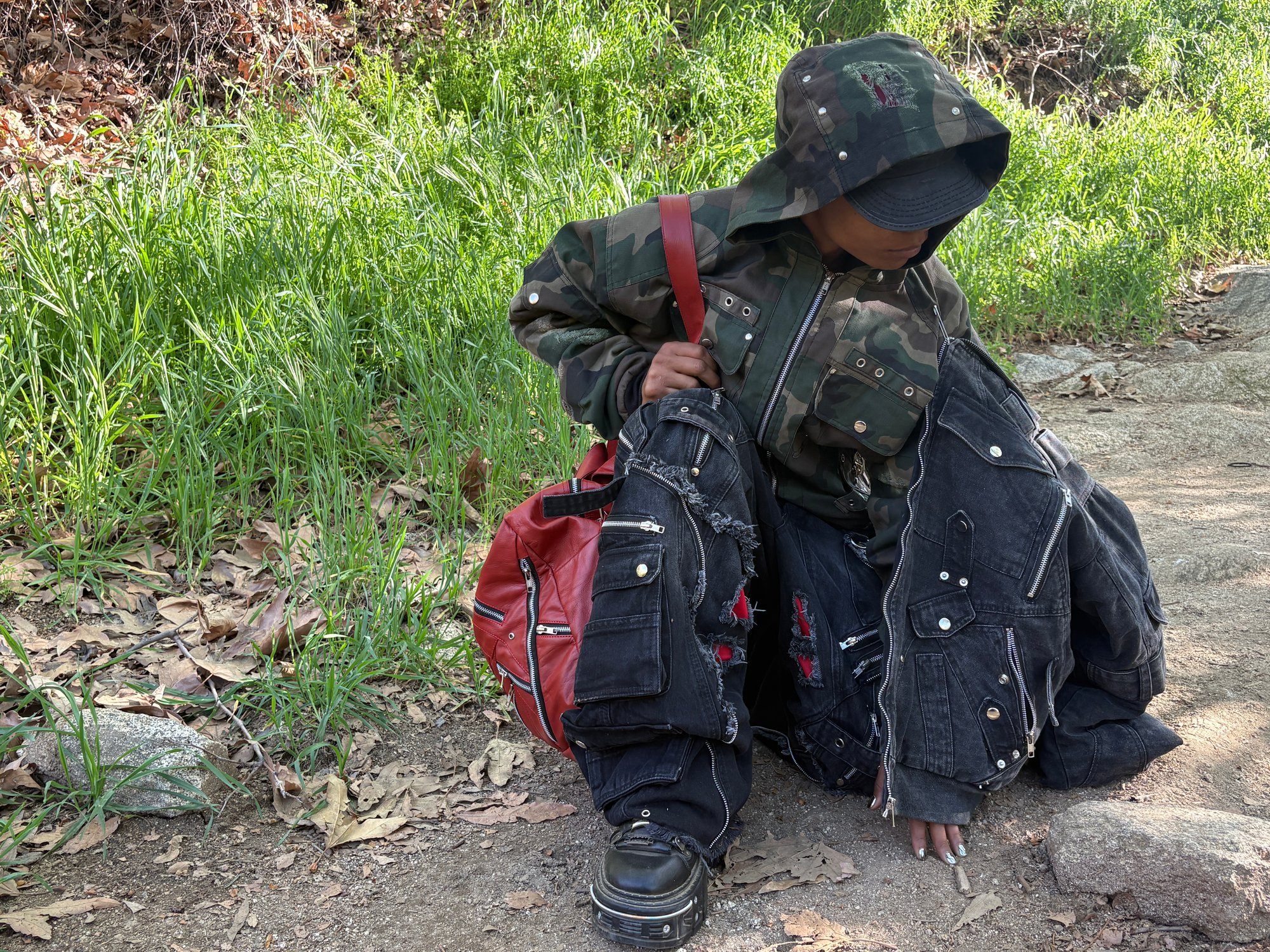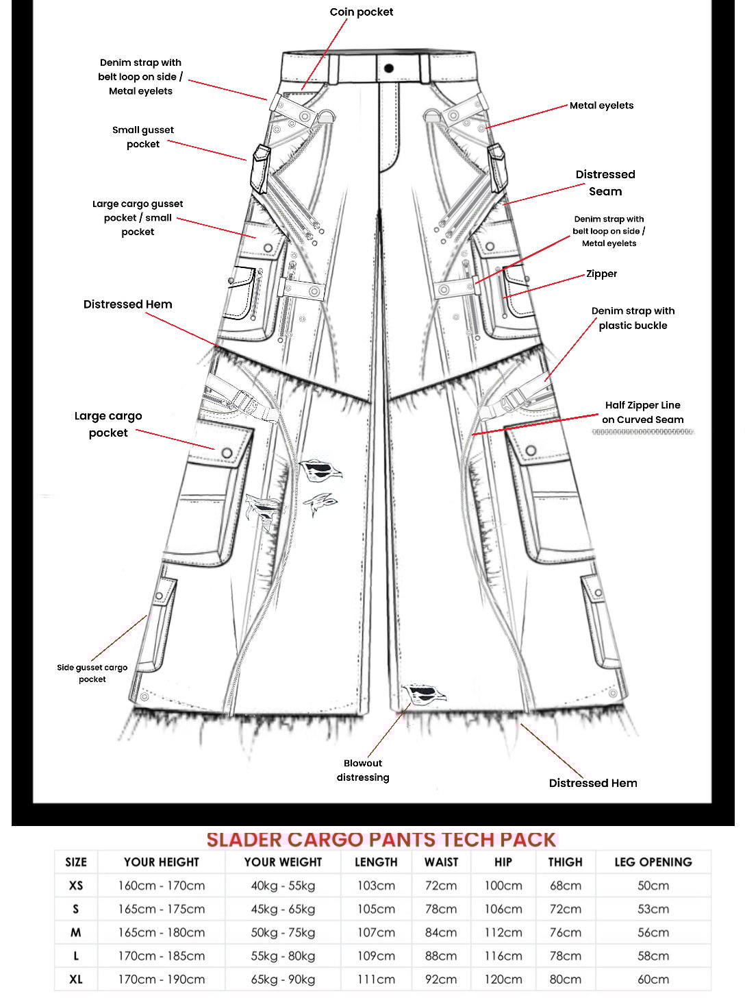 + Featuring ‘Slader’, a garment apart of our AW25 collection, featuring a wide leg barrel jean like fitting, to accentuate a baggy fitting and a multitude of functional cargo pockets. Each piece includes hand distressed blowout detailing and hems. +